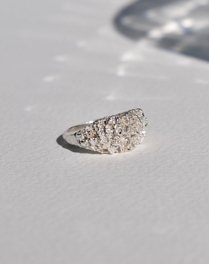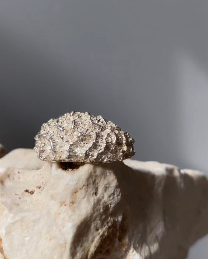 "Pure coral texture captured in silver, Raw, bold, one-of-a-kind. For those who dare to shine without polishing their edges." Print of my treasure hunt.